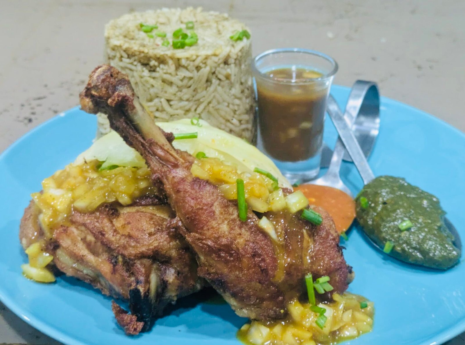 Award winning benachin, with protein of your choice, meat, fish, chicken and shrimps.